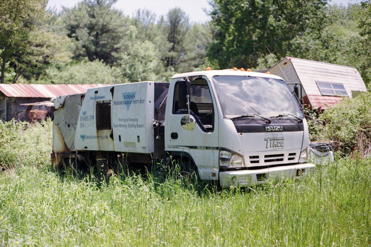 Photo: Maintenance Truck in an overgrown yard | Film Stock: Kodak Pro Image 100